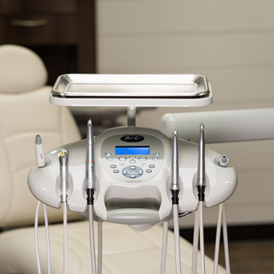 Easily integrate KaVo TLC electric handpieces (optional). Incorporate key ancillary equipment: camera, scaler and curing light. Also features a USB port for plug and play.